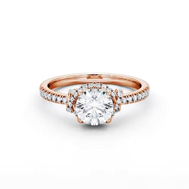 Crosby diamond engagement ring with a halo 18K Rose Gold setting. A shimmering halo of small round diamonds surrounds a single round shaped centre diamond in this elegant engagement ring. Additional round diamonds flows on either side of the shoulders. Smaller diamonds will be of VS1 Clarity and F Colour as standard. This ring is available in a range of metal options and your choice of natural or lab grown diamonds. We offer a free design service for any customised changes that you may require.