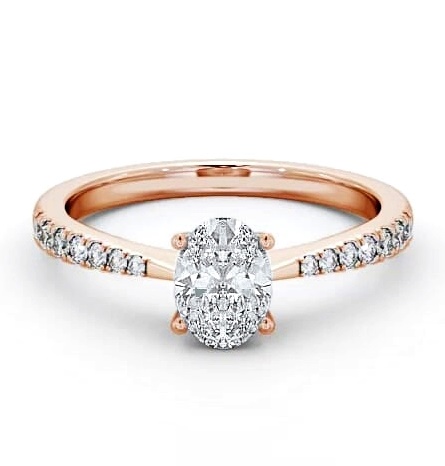 Kapri diamond engagement ring with a halo 18K Rose Gold setting. This glamourous ring features gentle curves of small round diamonds encircling the large centre diamond. Additional diamonds extend halfway down the band for a divine allure. Smaller diamonds will be of VS1 Clarity and F Colour as standard. This ring is available in a range of metal options and your choice of natural or lab grown diamonds. We offer a free design service for any customised changes that you may require.