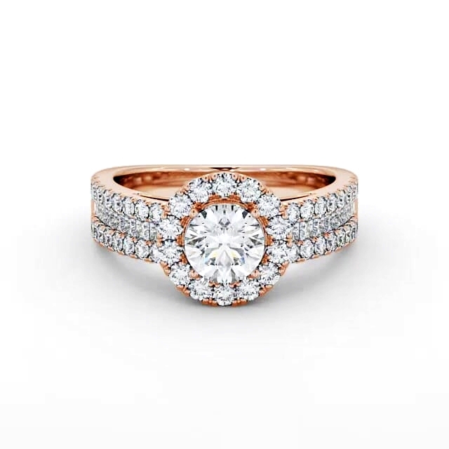 Halo Round Diamond Glamorous Engagement Ring 18K Rose Gold | Madina