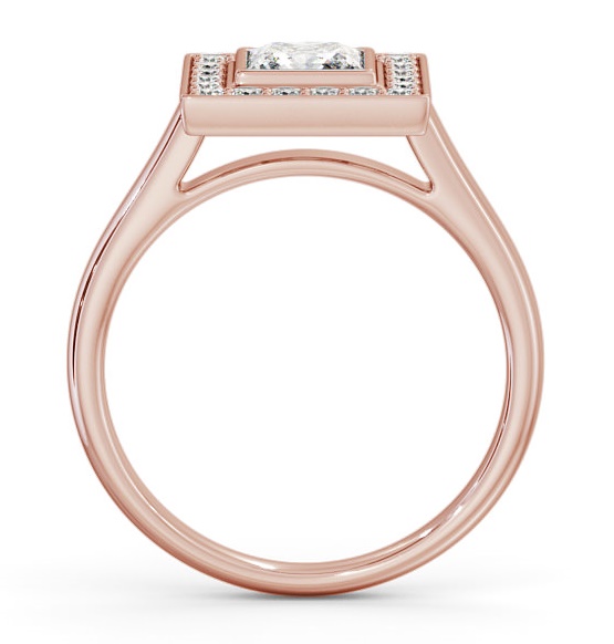 Roma diamond engagement ring with a halo 18K Rose Gold setting. With grace and allure, this engagement ring showcases a centre round diamond wrapped in a frame of smaller diamonds, and additional diamonds on crossover split shank. Smaller diamonds will be of standard quality VS1 Clarity and F Colour. This ring is available in a range of metal options and your choice of natural or lab grown diamonds. We offer a free design service for any customised changes that you may require.