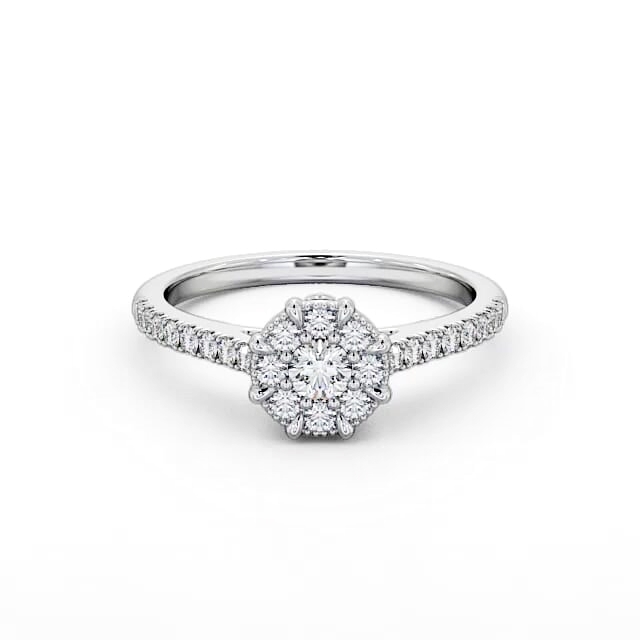 Halo Round Diamond Cluster Engagement Ring 18K White Gold | Adrianne