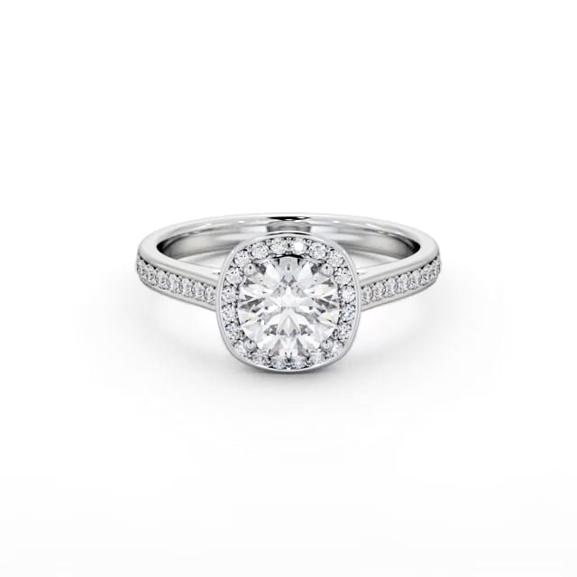 Round Diamond with Channel Set Halo Engagement Ring 18K White Gold | Cambria