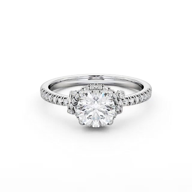 Halo Round Diamond Knott Design Engagement Ring 18K White Gold | Crosby