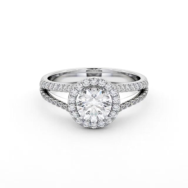 Halo Round Diamond Split Band Engagement Ring 18K White Gold | Kolby