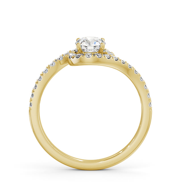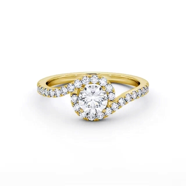 Halo Round Diamond Swirling Design Engagement Ring 18K Yellow Gold | Indira