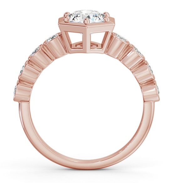Adalee diamond engagement ring with an open halo 9K Rose Gold setting. Gracefully elegant, this vintage-inspired engagement ring showcases a centre round diamond artfully hugged by shimmering smaller diamond-lined loop. Smaller diamonds will be of standard quality VS1 Clarity and F Colour. This ring is available in a range of metal options and your choice of natural or lab grown diamonds. We offer a free design service for any customised changes that you may require.