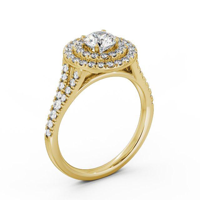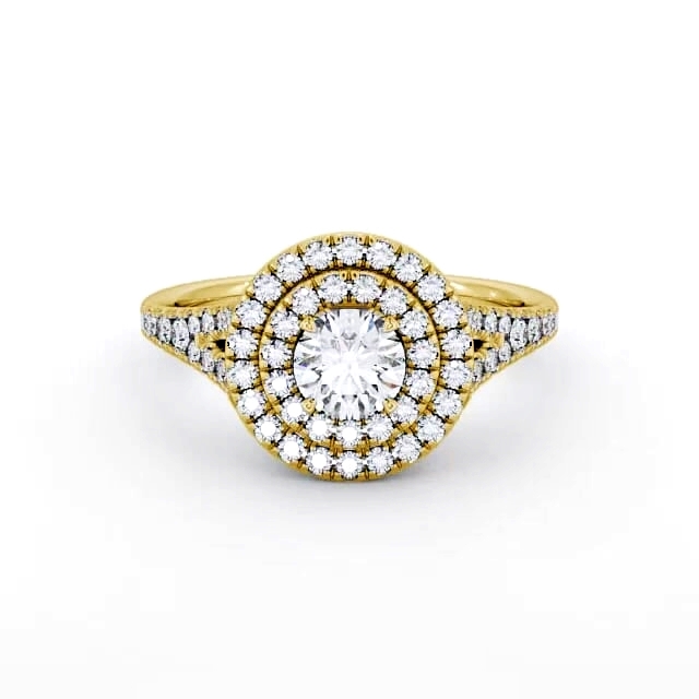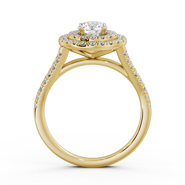 Halo Round Diamond Double Row Engagement Ring 9K Yellow Gold | Kenli