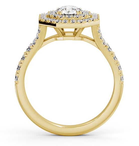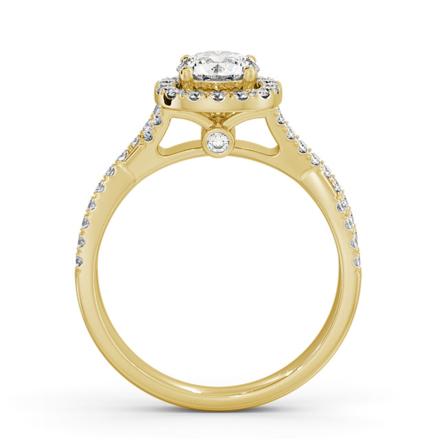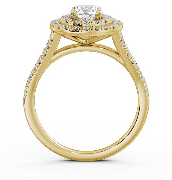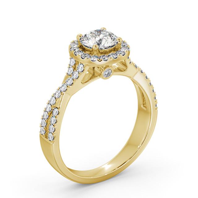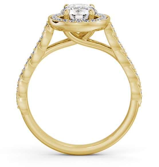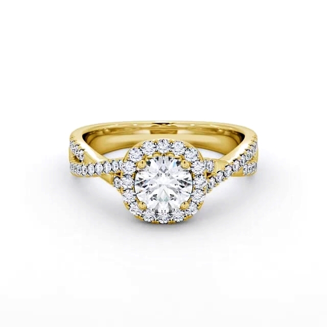 Halo Round Diamond Cross Over Band Engagement Ring 9K Yellow Gold | Roma