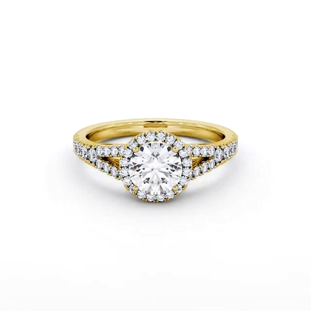 Halo Round Diamond Split Band Engagement Ring 9K Yellow Gold | Salina