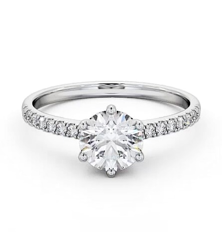 Rosario diamond engagement ring with a halo Platinum setting. Elegantly refined, this halo style ring showcases a centre round diamond placed amid a small round diamonds studded frame and additional diamond lined shoulders. Smaller diamonds will be of VS1 Clarity and F Colour as standard. This ring is available in a range of metal options and your choice of natural or lab grown diamonds. We offer a free design service for any customised changes that you may require.