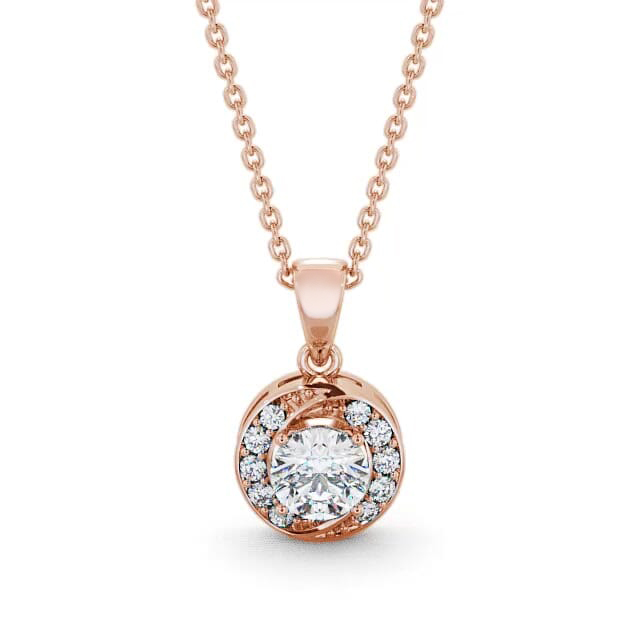 Halo Round Diamond Swirling Design Pendant 18K Rose Gold | Marielle