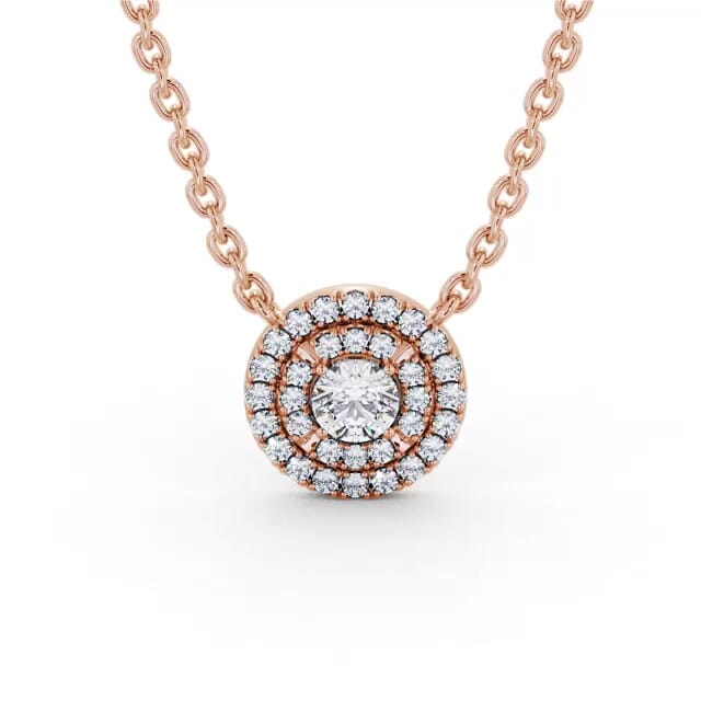 Double Halo Round Diamond Pendant 18K Rose Gold | Marisol