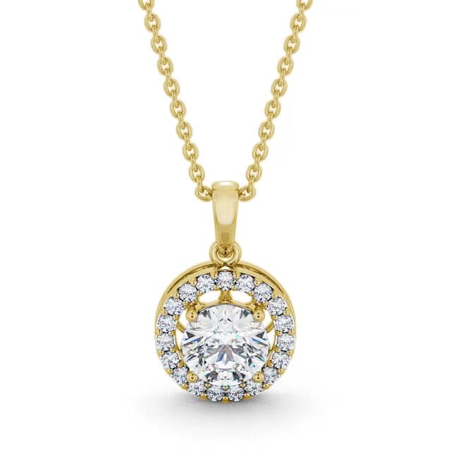 Halo Round Diamond Pendant 18K Yellow Gold | Ella