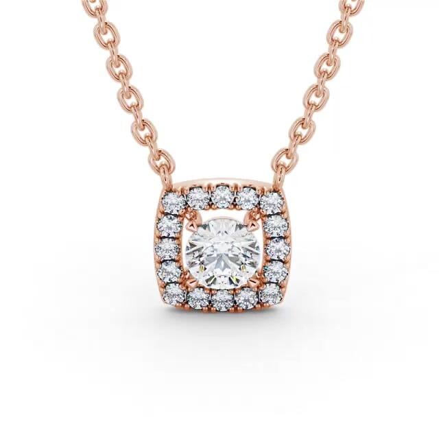Round Diamond with a Cushion Shape Halo Pendant 9K Rose Gold | Andrea