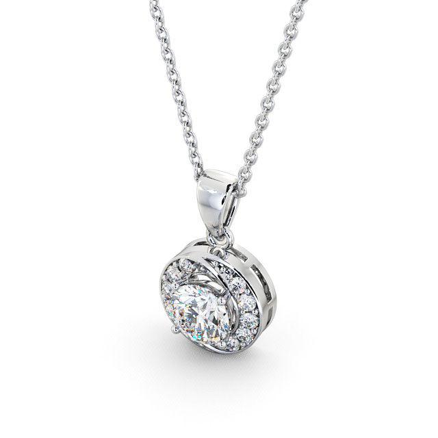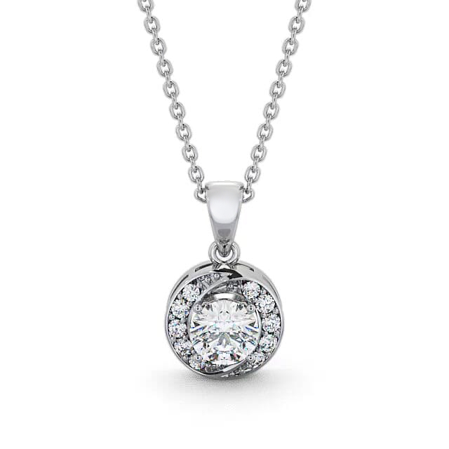 Halo Round Diamond Swirling Design Pendant 9K White Gold | Marielle