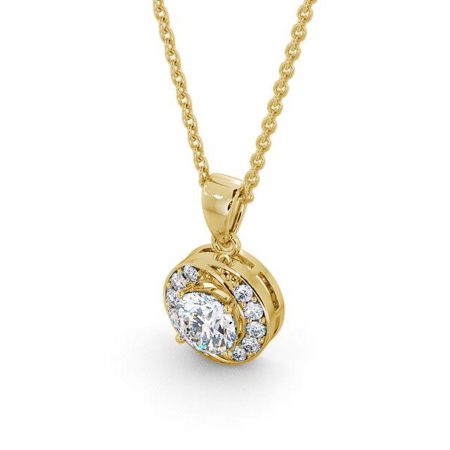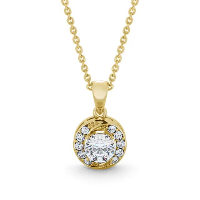 Halo Round Diamond Swirling Design Pendant 9K Yellow Gold | Marielle