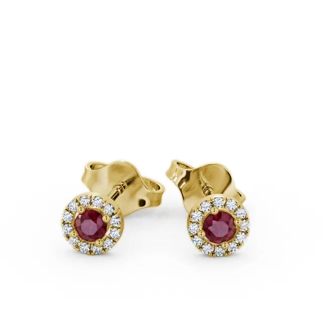 Halo Ruby and Diamond 0.40ct Earrings 9K Yellow Gold | Addisen
