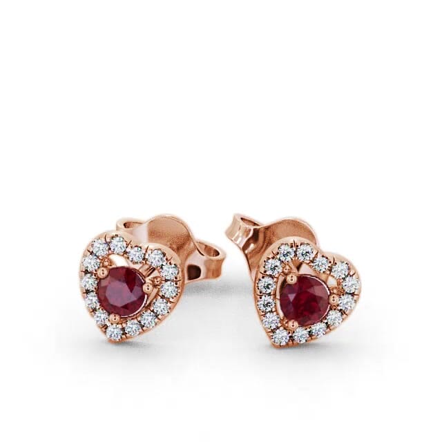 Bianka ruby and diamond 0.56ct earrings in a 18K Rose Gold setting. Simple yet gorgeous, this stunning pair of heart design stud earring showcases 0.40 Carat total weight round ruby gemstones, haloed by 0.16 Carat total weight of round diamonds set in a heart frame. The total Carat weight is based on per pair. These earrings are available in a range of metal options with AAA grade gemstone. We offer a free design service for any customised changes that you may require.