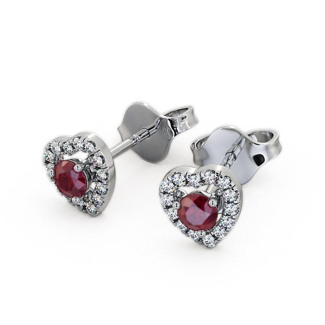 Halo Ruby and Diamond 0.56ct Earrings 9K White Gold | Bianka