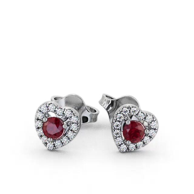 Bianka ruby and diamond 0.56ct earrings in a 9K White Gold setting. Simple yet gorgeous, this stunning pair of heart design stud earring showcases 0.40 Carat total weight round ruby gemstones, haloed by 0.16 Carat total weight of round diamonds set in a heart frame. The total Carat weight is based on per pair. These earrings are available in a range of metal options with AAA grade gemstone. We offer a free design service for any customised changes that you may require.