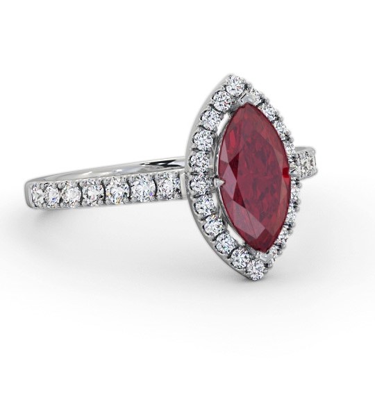 Halo Ruby and Diamond 1.20ct Ring 18K White Gold | Laven
