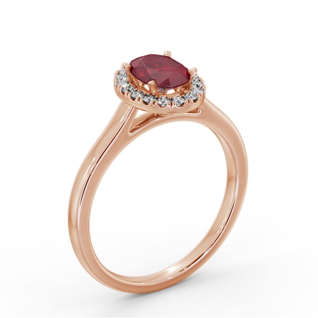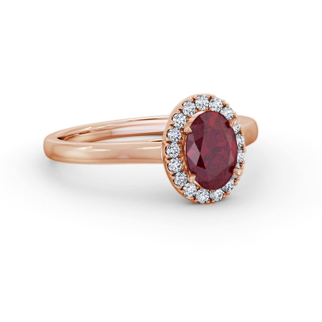 Candice halo ruby and diamond 1.20ct ring in 9K Rose Gold. A solitary 1.05ct Oval shaped ruby is encircled by a cluster of small round shaped diamonds totaling 0.15ct in this classic yet impressive design ring. This ring is available in a variety of metal types and your choice of natural or lab grown gems. We provide a free design service for any special modifications that you may require.