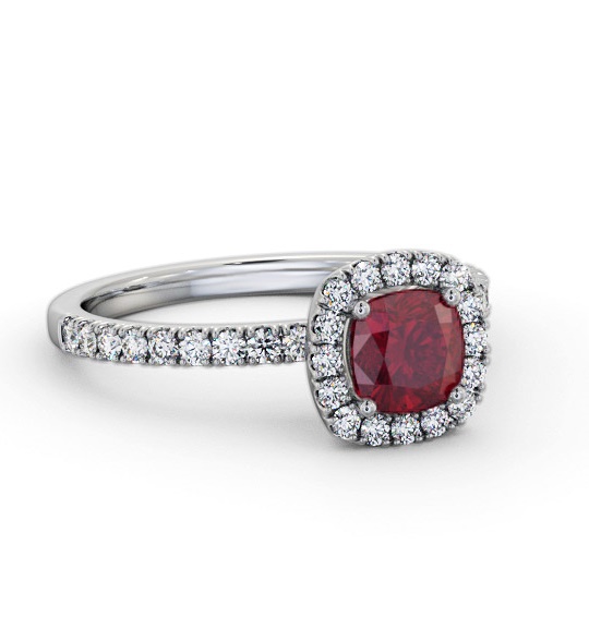 Halo Ruby and Diamond 1.35ct Ring 18K White Gold | Camela