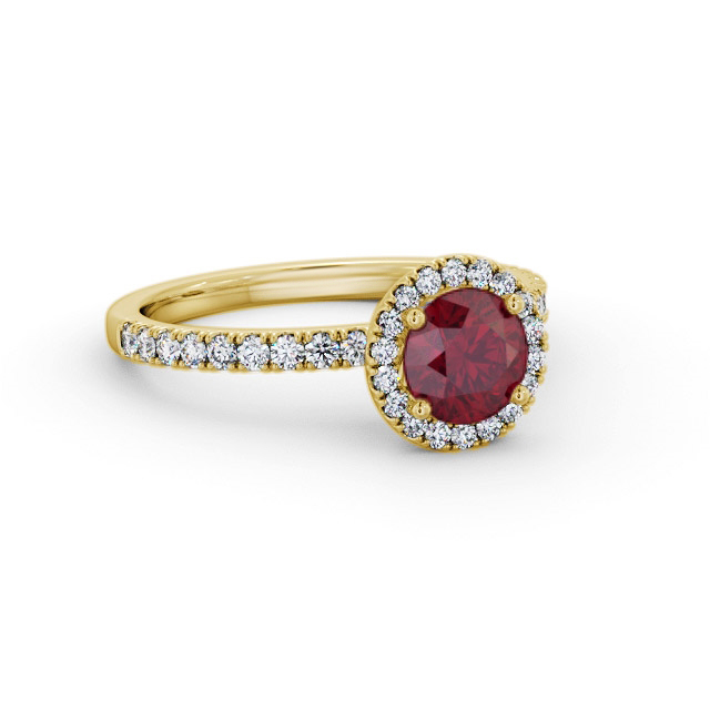 Halo Ruby and Diamond 1.45ct Ring 9K Yellow Gold | Acali