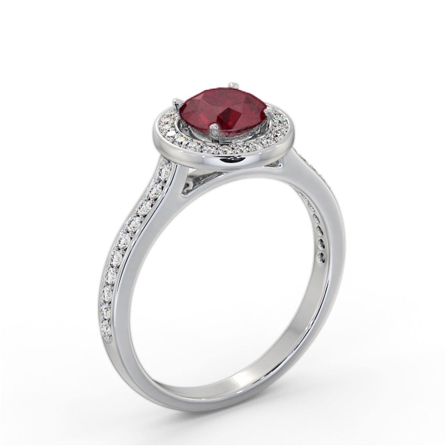 Halo Ruby and Diamond 1.65ct Ring 18K White Gold | Manal