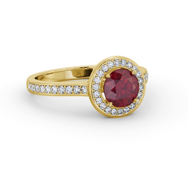Halo Ruby and Diamond 1.65ct Ring 9K Yellow Gold | Manal
