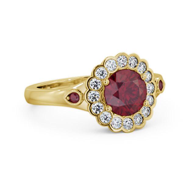 Halo Ruby and Diamond 1.69ct Ring 9K Yellow Gold | Emmalin