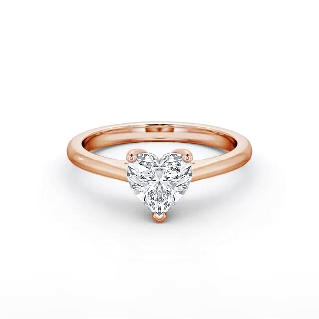 Abbie diamond engagement ring with a three claw 18K Rose Gold setting. Heart shaped diamond is perfectly secured by three prongs in this alluring solitaire engagement ring with a mid band width of 1.6mm. This ring is available in a range of metal options and your choice of natural or lab grown diamonds. We offer a free design service for any customised changes that you may require.