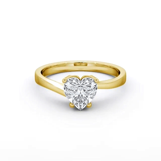 Akemi diamond engagement ring with a three claw 18K Yellow Gold setting. Unique and versatile, this engagement ring brightly glows with a heart shaped diamond set in a traditional four prong setting. With a mid band width of 1.8mm, this ring is available in a range of metal options and your choice of natural or lab grown diamonds. We offer a free design service for any customised changes that you may require.