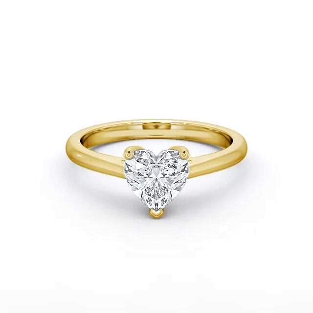 Abbie diamond engagement ring with a three claw 9K Yellow Gold setting. Heart shaped diamond is perfectly secured by three prongs in this alluring solitaire engagement ring with a mid band width of 1.6mm. This ring is available in a range of metal options and your choice of natural or lab grown diamonds. We offer a free design service for any customised changes that you may require.