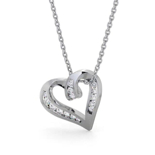 Soha heart shaped diamond 0.38 Carat pendant in 18K White Gold. Exuding fluid elegance and dazzling allure, this open heart pendant is adorned with a glittering channel set round diamonds. This pendant is available in a range of metal and chain options with your choice of natural or lab grown diamonds. We offer a free design service for any customised changes that you may require.