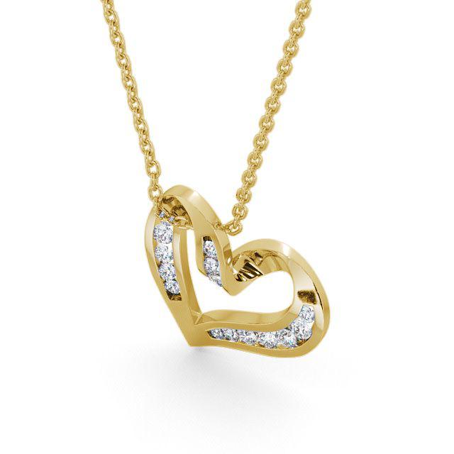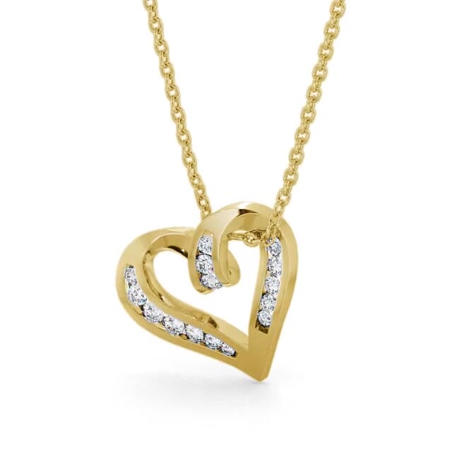 Soha heart shaped diamond 0.38 Carat pendant in 9K Yellow Gold. Exuding fluid elegance and dazzling allure, this open heart pendant is adorned with a glittering channel set round diamonds. This pendant is available in a range of metal and chain options with your choice of natural or lab grown diamonds. We offer a free design service for any customised changes that you may require.