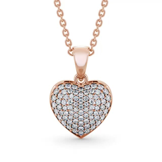 Hilary cluster diamond pendant in 9K Rose Gold. Gracefully hanging from a lustrous bail, this striking pendant showcases a bold heart shape encrusted with sparkling round diamonds. This pendant is available in a range of metal and chain options with your choice of natural or lab grown diamonds. We offer a free design service for any customised changes that you may require.
