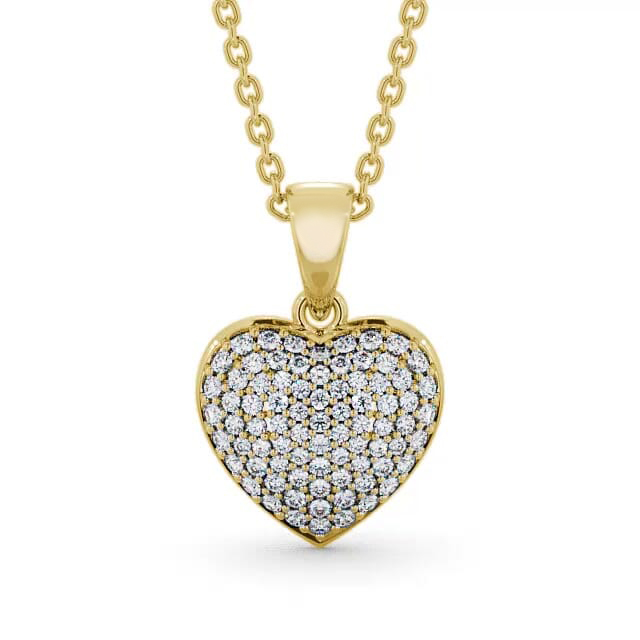 Hilary cluster diamond pendant in 9K Yellow Gold. Gracefully hanging from a lustrous bail, this striking pendant showcases a bold heart shape encrusted with sparkling round diamonds. This pendant is available in a range of metal and chain options with your choice of natural or lab grown diamonds. We offer a free design service for any customised changes that you may require.