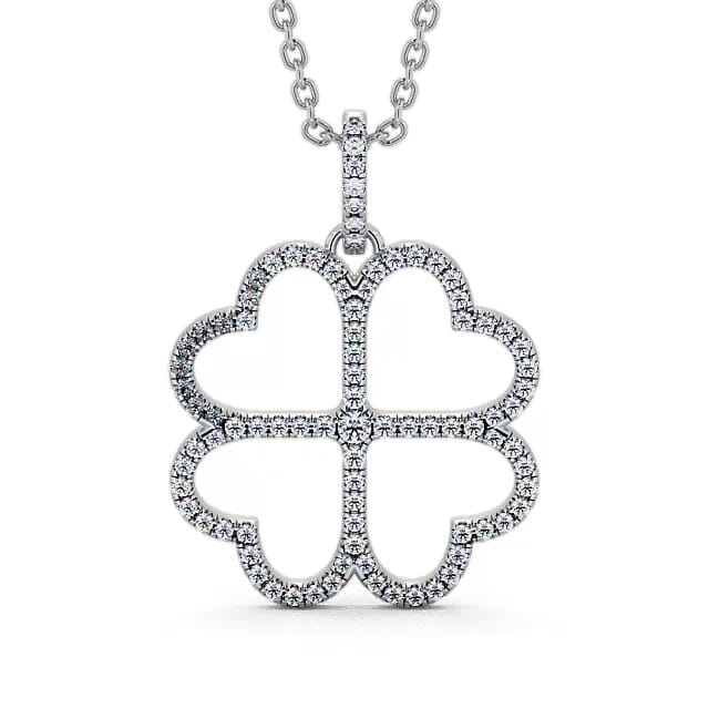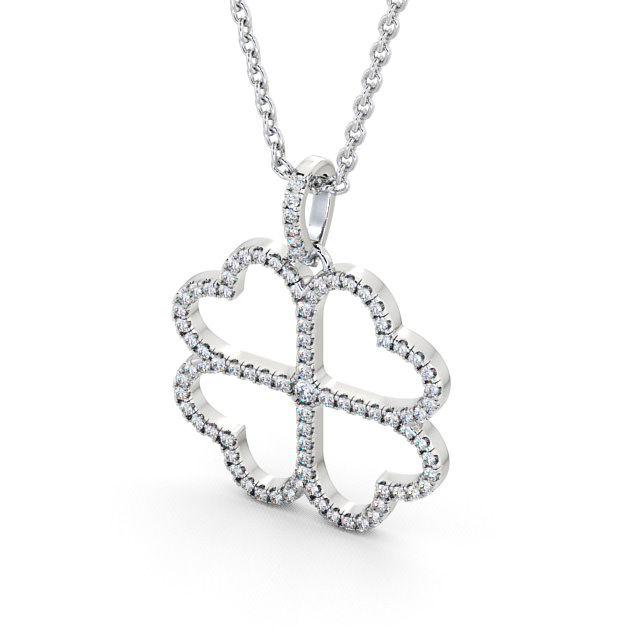 Zarina heart shaped diamond pendant in 18K White Gold. This alluring pendant features four glittering hearts lined with glistening round diamonds, all joined together to create one lucky four-leaf clover design. This pendant is available in a range of metal and chain options with your choice of natural or lab grown diamonds. We offer a free design service for any customised changes that you may require.