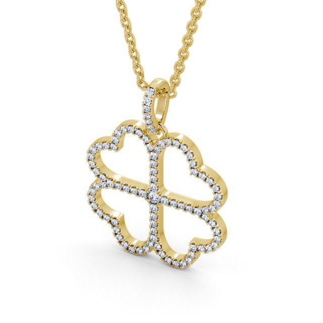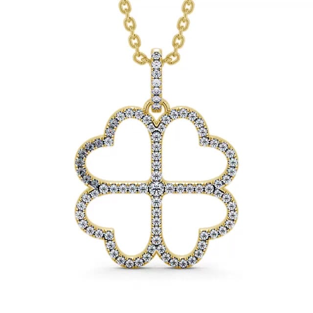 Zarina heart shaped diamond pendant in 18K Yellow Gold. This alluring pendant features four glittering hearts lined with glistening round diamonds, all joined together to create one lucky four-leaf clover design. This pendant is available in a range of metal and chain options with your choice of natural or lab grown diamonds. We offer a free design service for any customised changes that you may require.