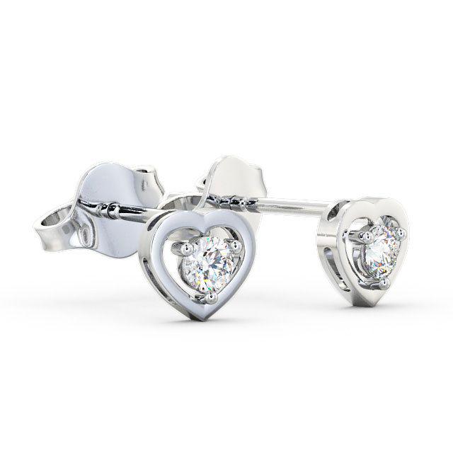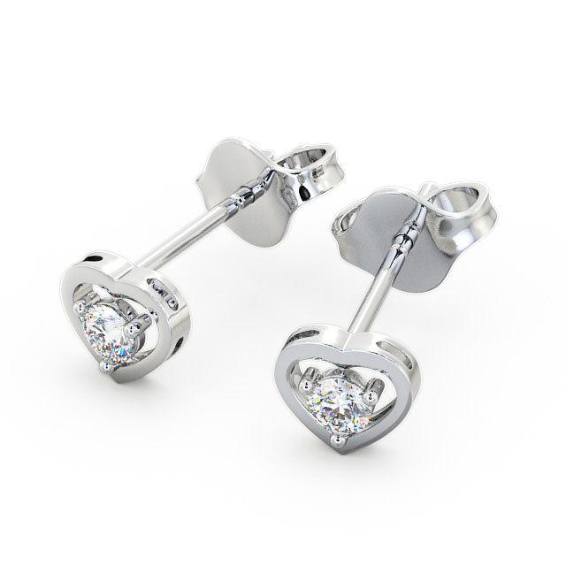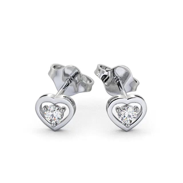 Heart Shaped Round Diamond Stud Earrings 18K White Gold | Frances
