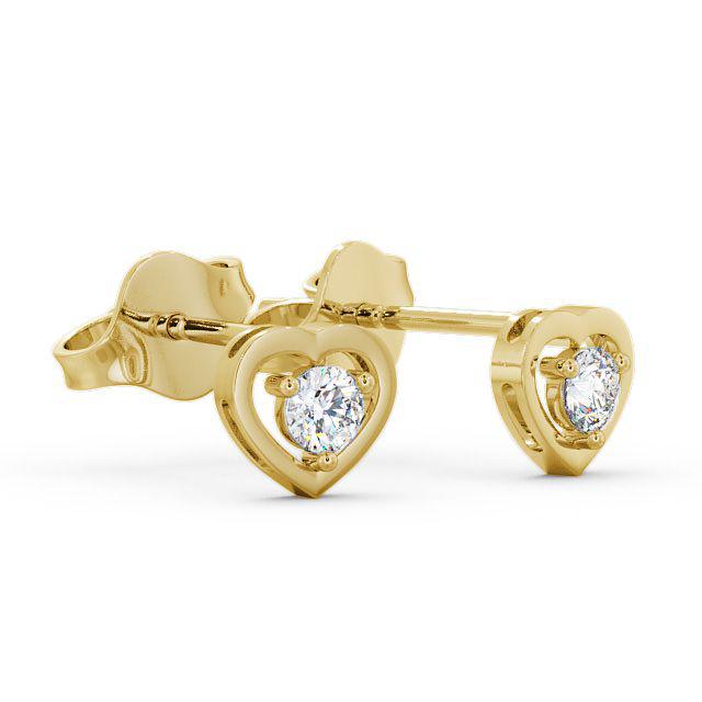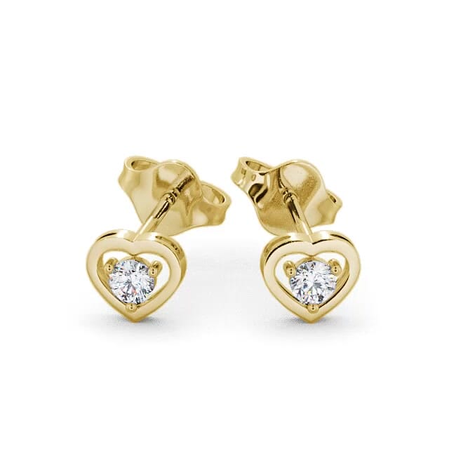Heart Shaped Round Diamond Stud Earrings 18K Yellow Gold | Frances