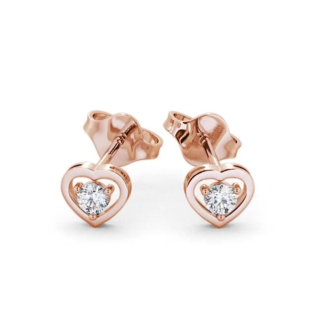 Heart Shaped Round Diamond Stud Earrings 9K Rose Gold | Frances