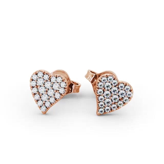 Arlie heart style diamond earrings in 18K Rose Gold. Dazzling and elegant, these romantic heart shaped earrings are adorned with a glistening cluster of pave set round diamonds. The total diamond weight is based on per pair. These earrings are available in a range of metal options and your choice of natural or lab grown diamonds. We offer a free design service for any customised changes that you may require.
