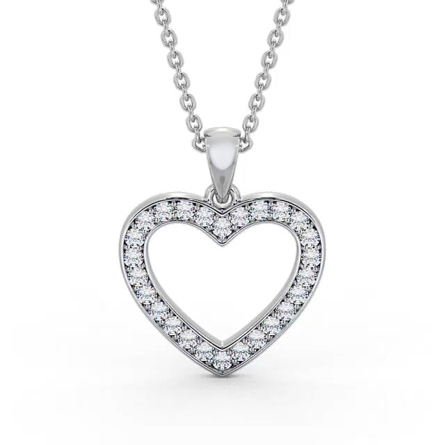 Heart Style Round Diamond Channel Pave Pendant 9K White Gold | Anja