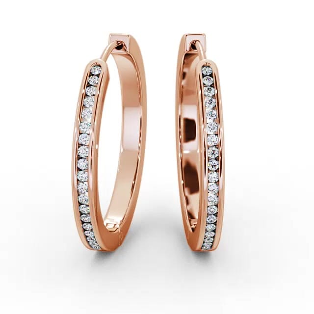 Hoop Round Diamond Channel Set Earrings 18K Rose Gold | Adaly