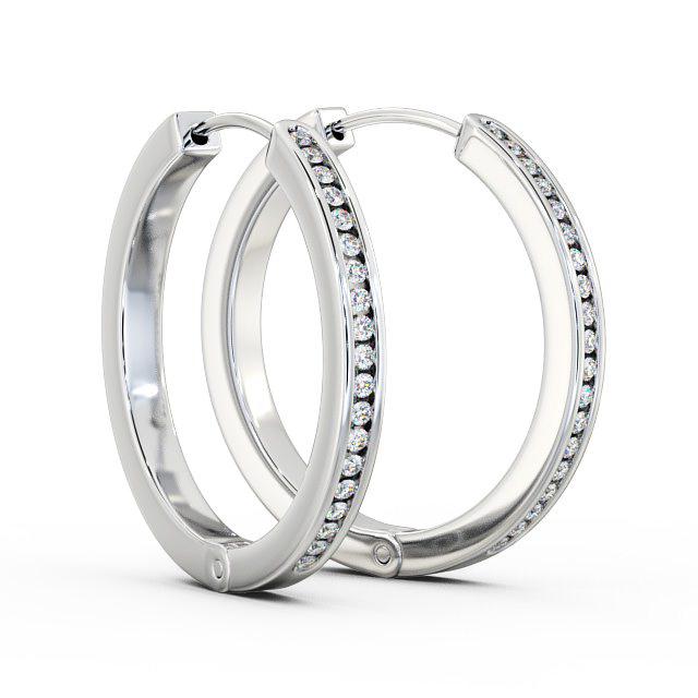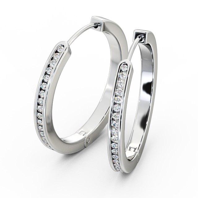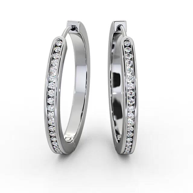 Hoop Round Diamond Channel Set Earrings 18K White Gold | Adaly