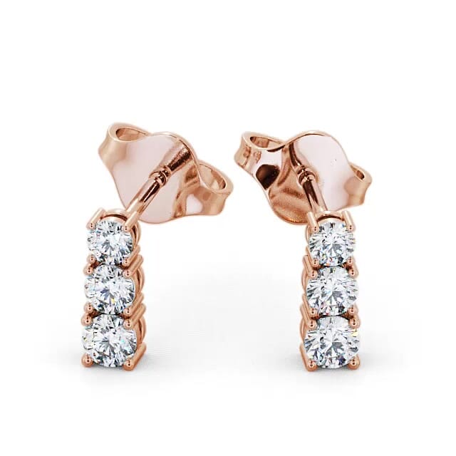 Anayah diamond journey earrings in 18K Rose Gold. Sleek, subtle and chic, these earrings exhibits three graduated round diamonds prong set in a journey design. The total diamond weight is based on per pair. These earrings are available in a range of metal options and your choice of natural or lab grown diamonds. We offer a free design service for any customised changes that you may require.