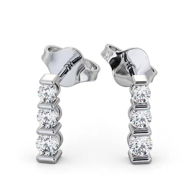 Ellie diamond journey earrings in 9K White Gold. Stylish and lustrous, these earrings features three graduated sparkling round diamonds representing a journey design. The total diamond weight is based on per pair. These earrings are available in a range of metal options and your choice of natural or lab grown diamonds. We offer a free design service for any customised changes that you may require.