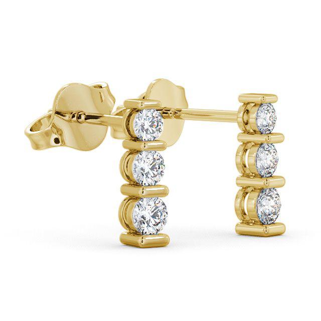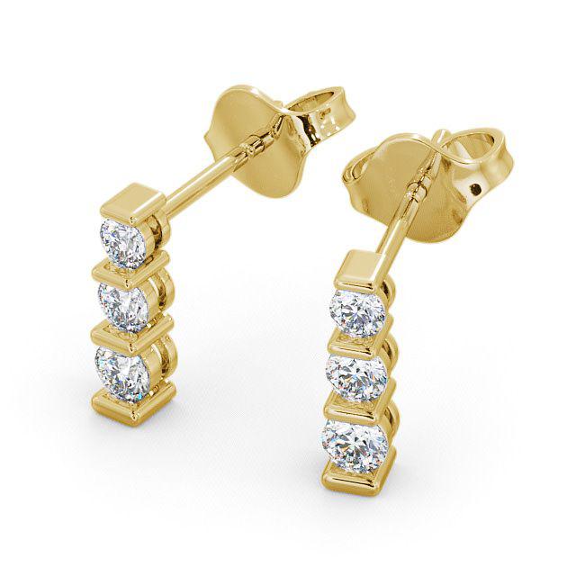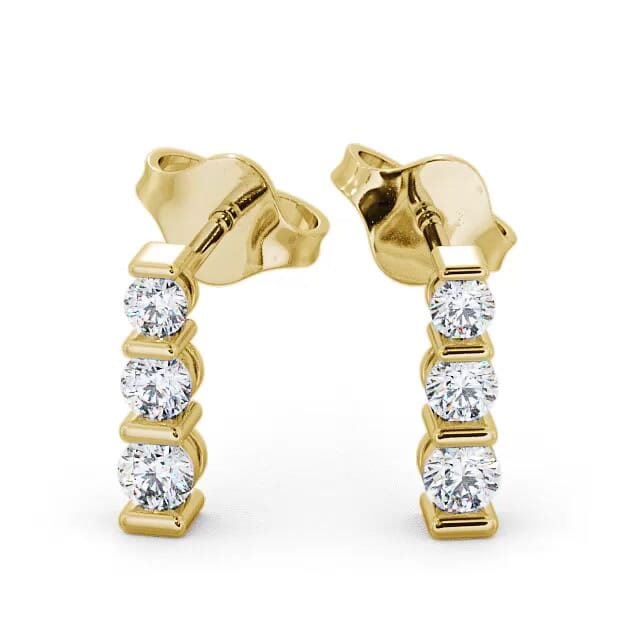 Ellie diamond journey earrings in 9K Yellow Gold. Stylish and lustrous, these earrings features three graduated sparkling round diamonds representing a journey design. The total diamond weight is based on per pair. These earrings are available in a range of metal options and your choice of natural or lab grown diamonds. We offer a free design service for any customised changes that you may require.